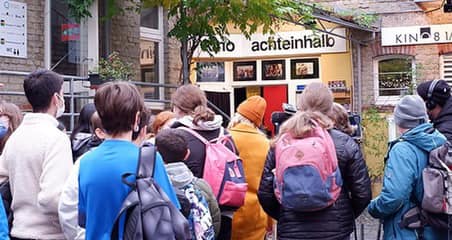 „Kino Achteinhalb powstało w 1990 r. i przyjęło jako nazwę tytuł filmu Federico Felliniego „Osiem i pól“, zaliczanego przez wiele lat do dziesiątki najlepszych filmów historii kina. Napisaliśmy wtedy do mistrza i poprosiliśmy go o pozwolenie przyjęcia takiego imienia. Fellini odpisał i udzielił pozwolenia, ciesząc się, że ktoś chce nazwać kino tytułem jego filmu. List reżysera oprawiliśmy w ramki i wisi w foyer kina jako relikwia i znak jakości.