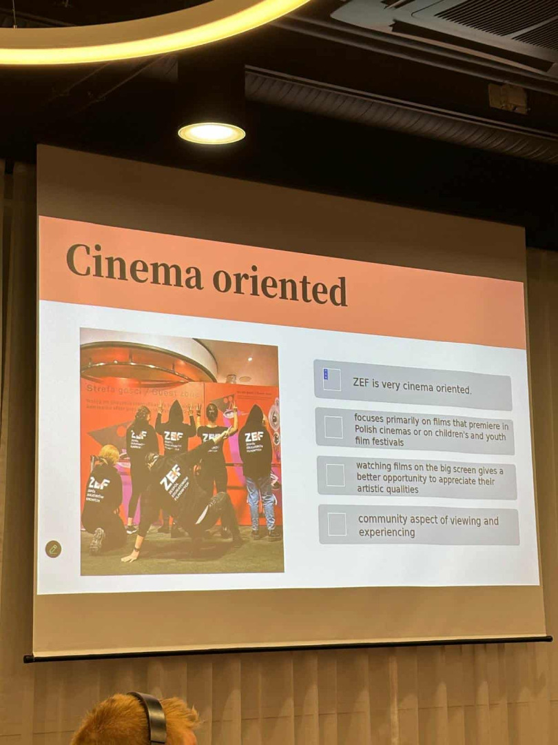 Dla nas najważniejsza była festiwalowa środa, która upłynęła pod znakiem sesji panelowych i prezentacji, w których uczestniczyli reżyserzy, twórcy filmowi oraz eksperci ZEF. Mieliśmy okazję zaprezentować dotychczasowe dokonania fundacji, przedstawić nowy projekt – Księgę ratingu – a także podyskutować o niezwykle aktualnym temacie, jakim jest obecność AI w przestrzeni kinowej i edukacji filmowej.